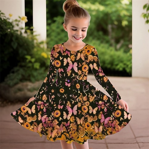 ragazze' 3D Farfalla Fiore Abito Manica Lunga Estate Primavera Vacanza Quotidiano Ferie Principessa Bello Dolce Bambini 4-12 Anni Vestito Casual Abito a trapezio Lunghezza al ginocchio Vestibilit
