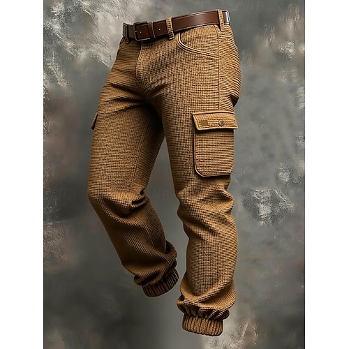 Per uomo Pantaloni Cargo Joggers Pantaloni Pantaloni a Nido d'Ape Multi-tasche Tasca con Patta Tinta unica Antivento Comodità Quotidiano All'aperto Ferie Streetwear Elegante Marrone Grigio scuro