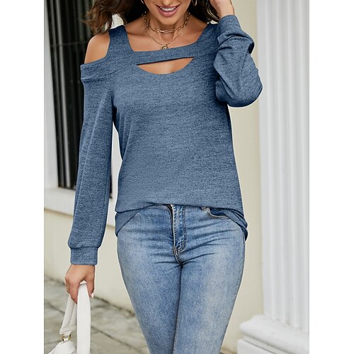 Per donna Blusa Tinta unica Elegante Casual Manica Lunga Collo a U Top Regolari Quotidiano Traforato Blu Nero Rosso Verde Grigio Primavera Autunno Inverno