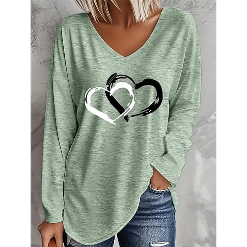 San Valentino Per donna Maglietta Cuore Grafico Vintage Elegante Classico Manica Lunga Scollo a V Top lunghi Quotidiano Stampato Blu Verde Primavera Autunno