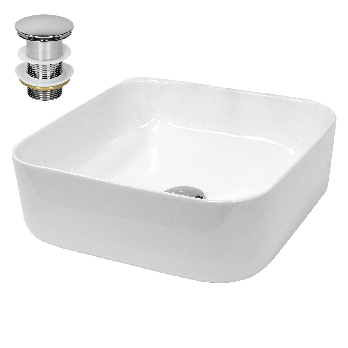 LuxeBath ECD Germany Aufsatzwaschbecken Keramik Weiß 390×390×140 mm, ohne Überlauf, inkl. Ablaufgarnitur – modernes Design Waschschale