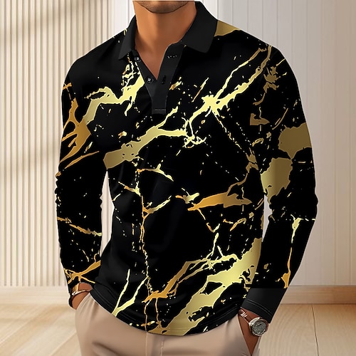 Per uomo Astratto Geometrico Polo Manica Lunga Magliette polo Bavero Casual All'aperto Streetwear Athleisure Abbigliamento quotidiano Stampa 3D Bottoni Primavera Autunno Inverno Blu Oro Verde