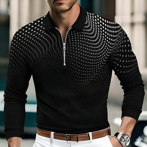 Per uomo Geometrico Polo Manica Lunga Collo ripiegato Moderno Tempo libero Athleisure Casual Quotidiano Cerniera Stampa 3D Primavera Autunno Inverno Nero Blu Verde