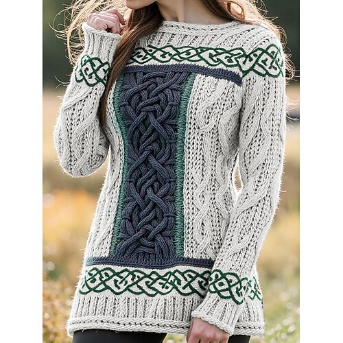 Per donna Felpa Vintage Stile Etnico Casual Colore Puro Treccia Girocollo Lavorato a maglia Manica Lunga Top Regolari Maglia All'aperto Quotidiano Weekend Blu Bianco Autunno Inverno