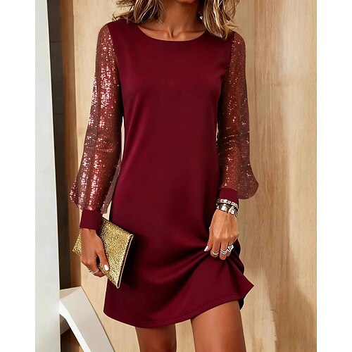 Per donna Mini Abito Abito con Paillettes Vestito da Festa Abito da Cocktail Elegante Moda Feste Natale Cocktail party Vestibilità regolare Semplice Manica Lunga Girocollo Nero Vino Primavera Autunno