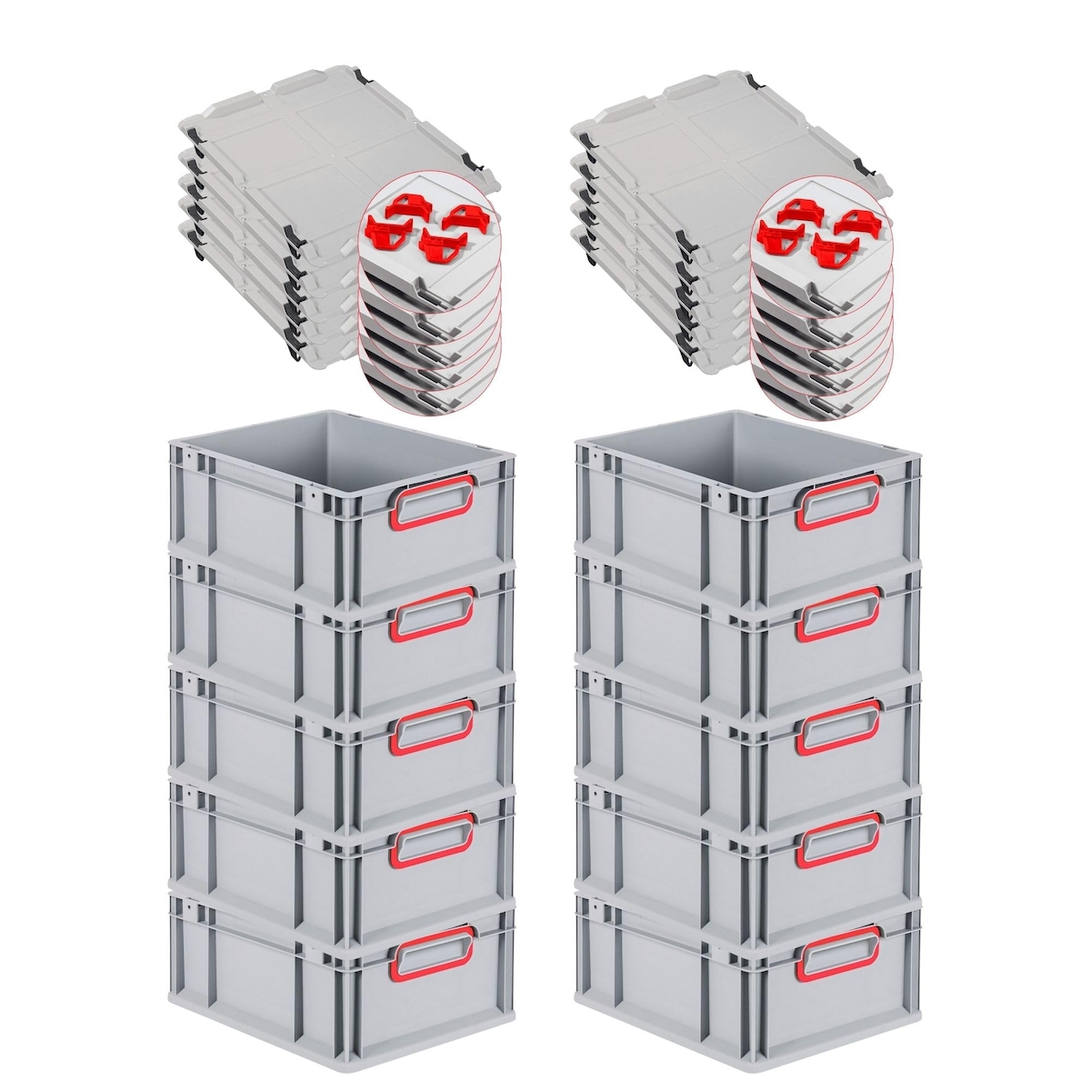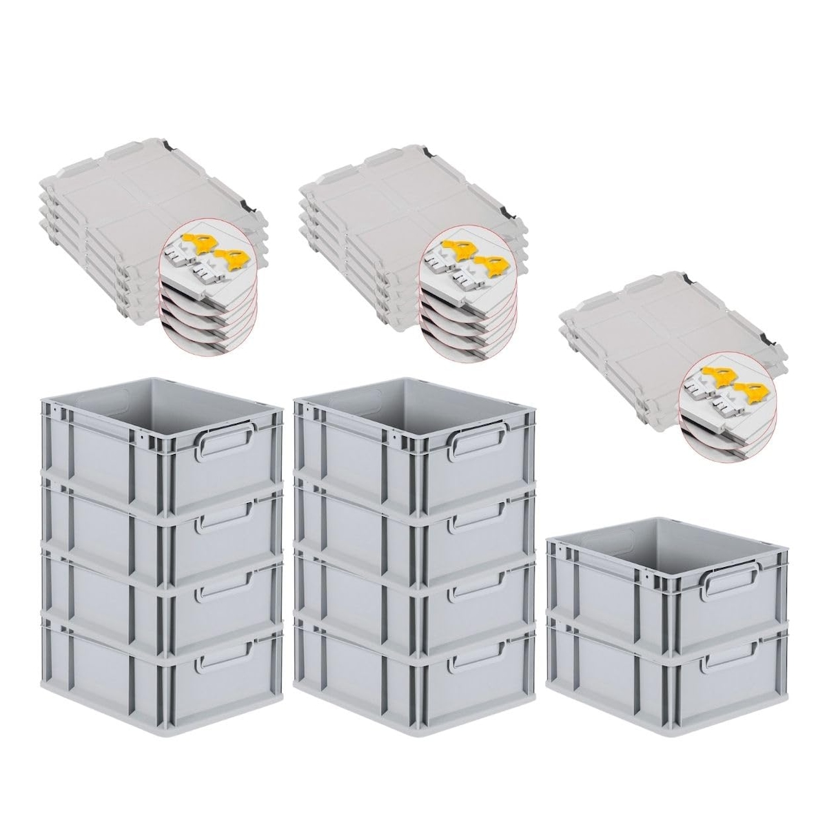 PROREGAL SuperSparSet 10x Eurobox NextGen Economy mit Scharnierdeckel & gelben Verschlüssen, Griffe zu, HxBxT 17x30x40cm, 16L, Eurobehälter, Box