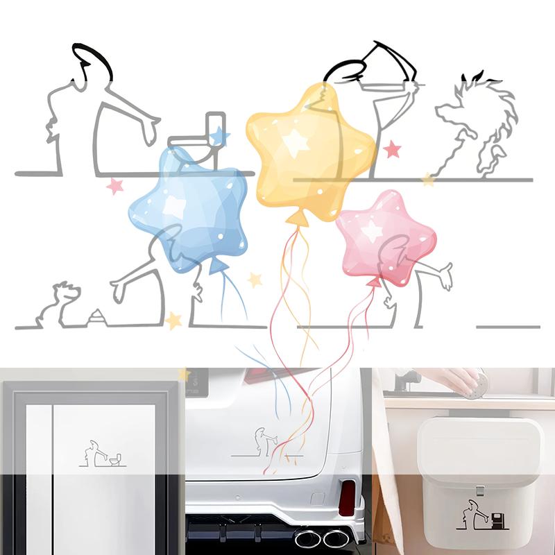 Die Linea Minimalist Line Art Autoaufkleber Stoßstange & Fenster Tür Wandaufkleber mit Cartoon-Figur Design Heim Auto Dekoration