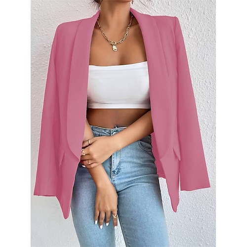 Per donna Blazer Confortevole Traspirante Tasca Casual Semplice Ufficio Streetwear Casuale Abbigliamento quotidiano Aperto davanti Regolare Collo ripiegato Vestibilità regolare Manica Lunga Capispalla