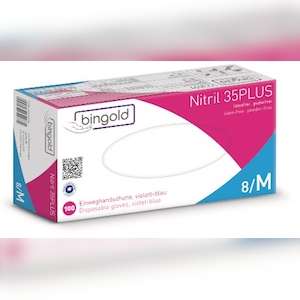 BINGOLD Nitril 35PLUS Einweghandschuhe Nitril-Handschuhe puderfrei Gr M Size 8