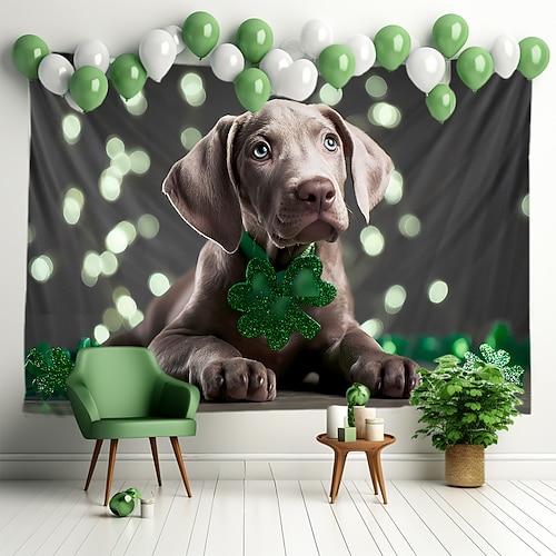 Festa di San Patrizio arazzo Striscioni Coperta Cane Trifoglio Carino Romantico 3D Camera da letto Soggiorno Dormitorio Stanza per adolescenti Dormitorio universitario Portico a muro Arredamento per