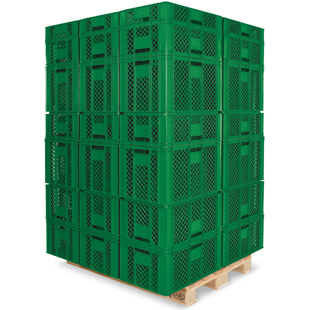 BRB 1 Palette / 78 Stück Stapelkörbe/Bäckerkästen in 5 Größen, Grundmaß LxB 600 x 400 mm, H 90 mm, 150 mm, 240 mm, 320 mm, 410 mm, Farbe grün