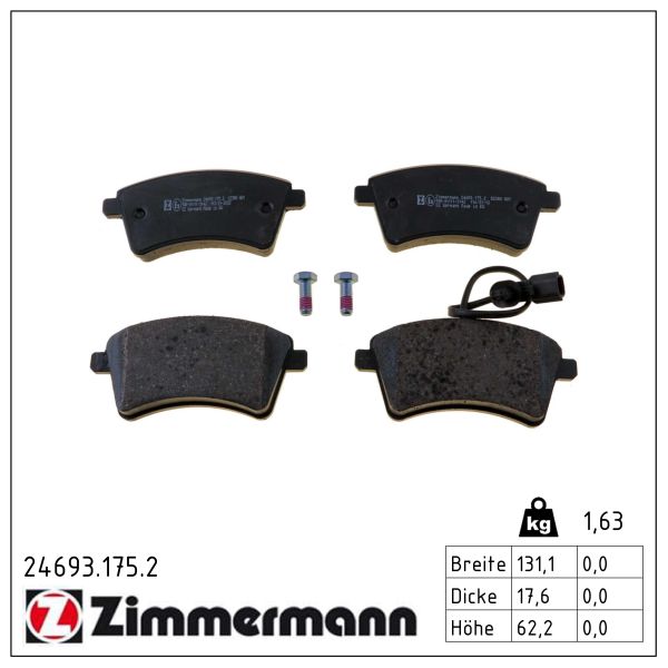 ZIMMERMANN Bremsbelagsatz, Scheibenbremse 24693.175.2 vorne rechts links Foto entspricht Lieferumfang für RENAULT NISSAN 8660005110 410605649R 41060-0