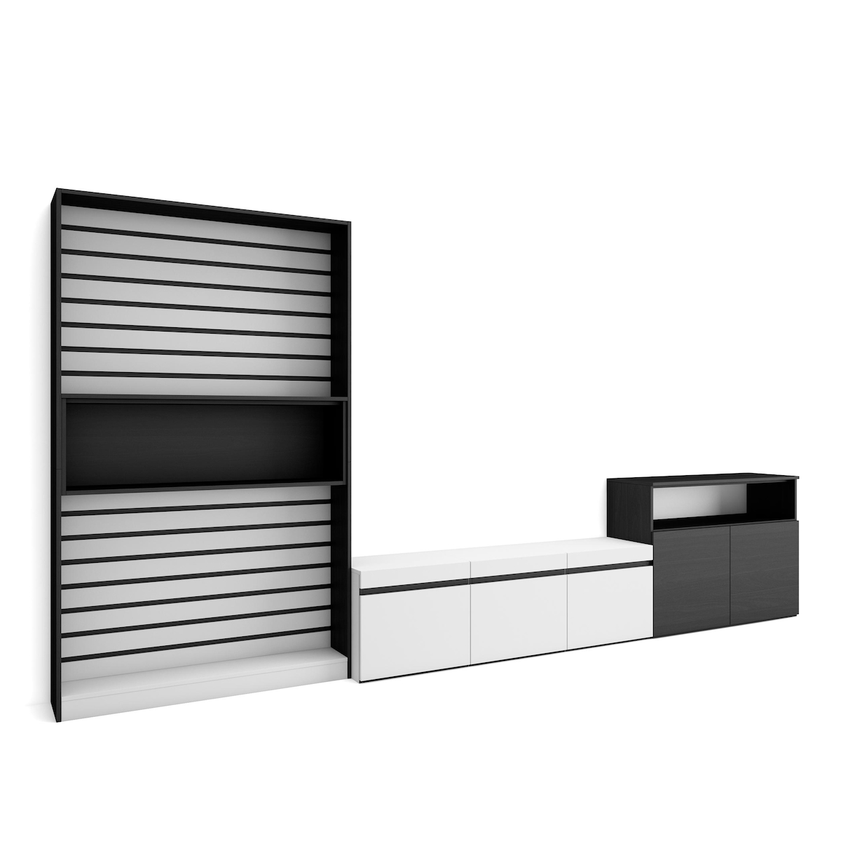 SKRAUT HOME Wohnzimmer-TV-Schrank, Wohnwand-System, 360x35x186cm, Für TV-Geräte bis 65“, Möbel-Set, Moderner Stil, Schwarz und Weiß _ 110_1