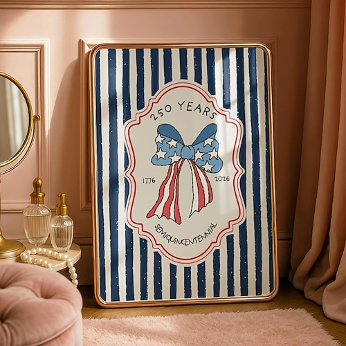 Stampa di 250 anni di libertà arte murale del 250° anniversario USA poster patriottico del giorno dell'indipendenza stampabile per il 4 luglio decorazione retro americana con nastro