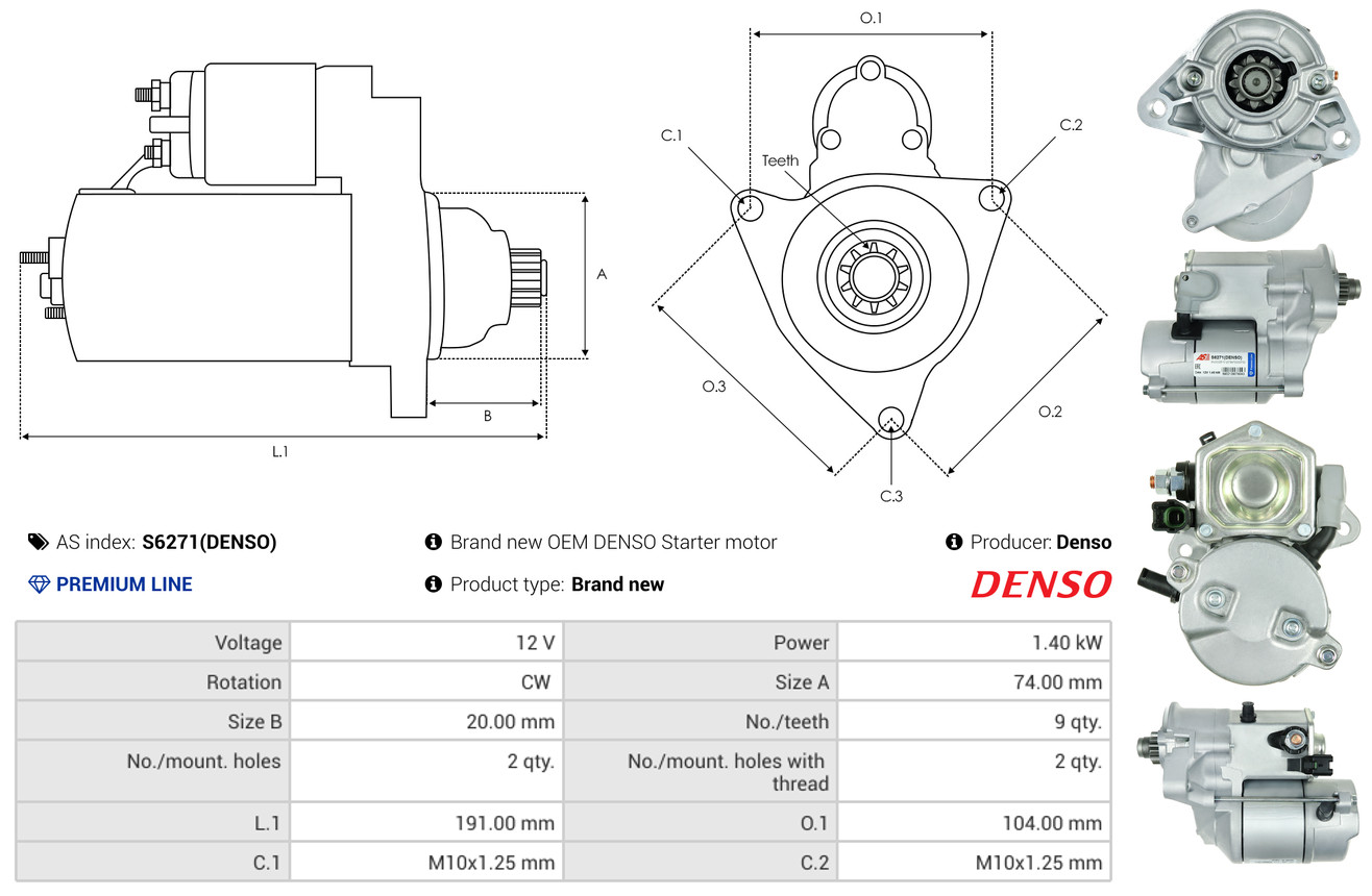 AS-PL Starter S6271(DENSO) 12V für TOYOTA 2810075190 2810042040 28100-75090