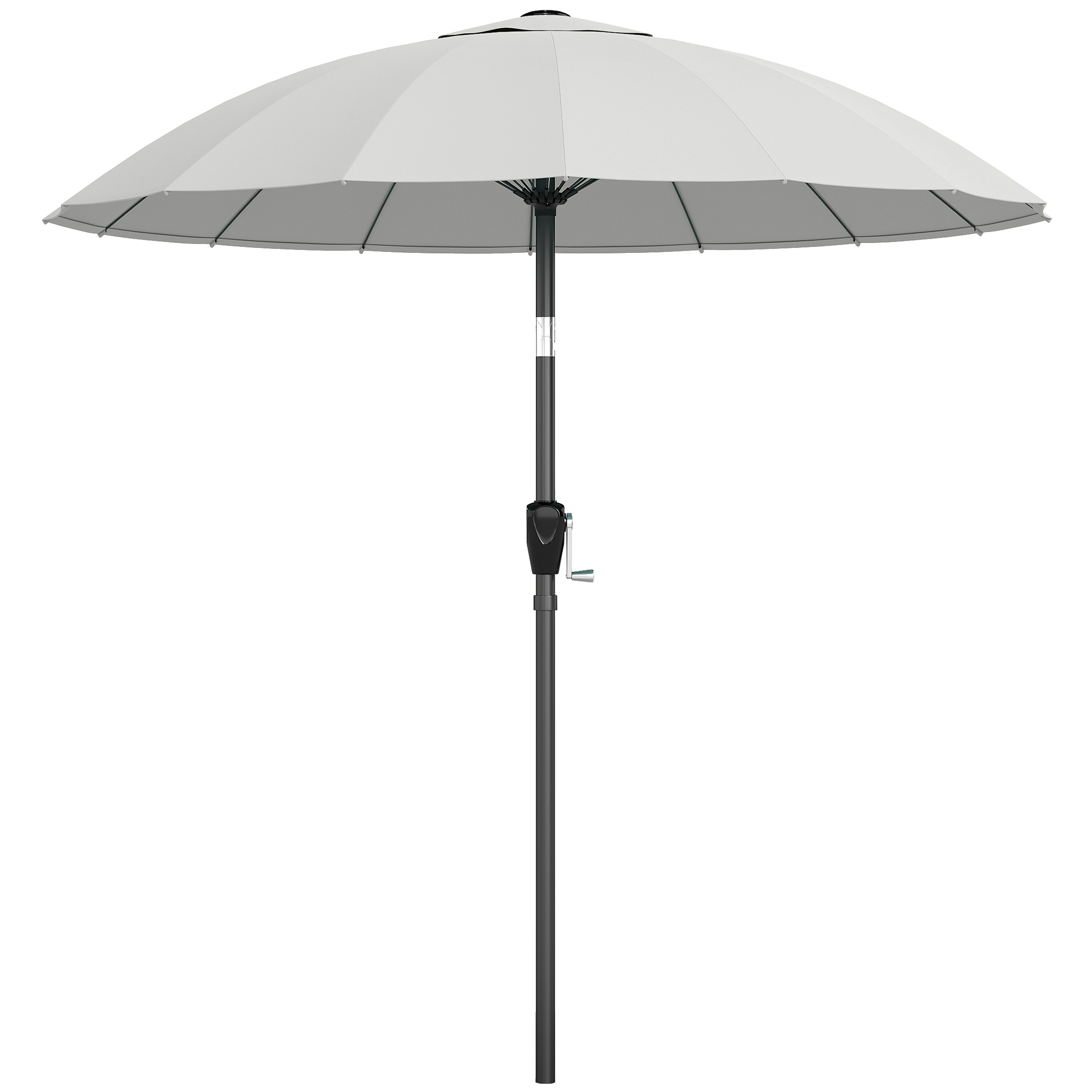 Outsunny 2 m Shanghai Garden Parasol Umbrella with 16 Fibreglass Ribs, Outdoor Parasol Sun Shade with Crank & Tilt, Light Grey