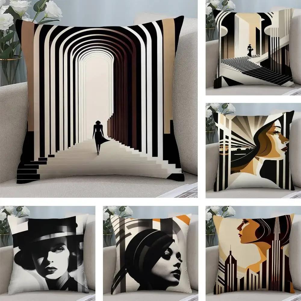 Abstract Art Deco Pillow Case Short plush Double-sided Print Square Throw Pillow Covers Sofa Home Cushion Decor