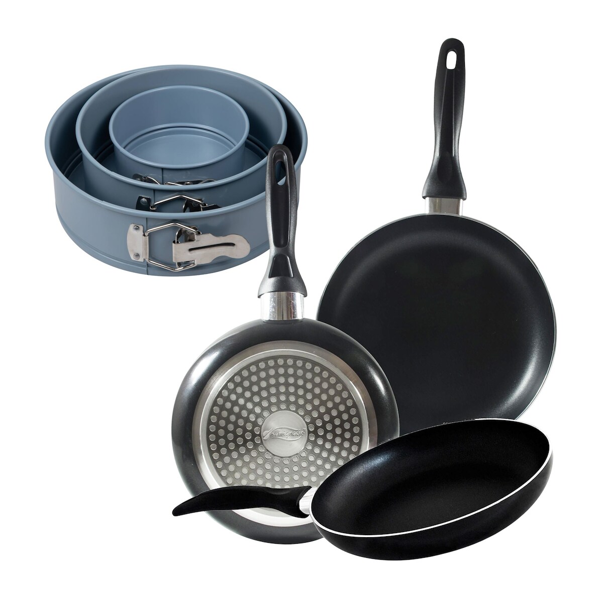 BERGNER - Set aus 3 gepressten Aluminium-Pfannen Ø16/Ø20/Ø24 cm, geeignet für Induktion Navy Black 3-teiliges Set runde Backformen Ø12/Ø18/Ø22 cm