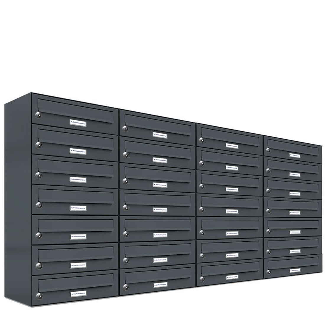 AL Briefkastensysteme 28 Fächer Premium Wand Briefkasten Anlage in RAL 7016 Anthrazit Grau, Post A4, robust, wetterfest, Artikelnummer: 132P28EA4