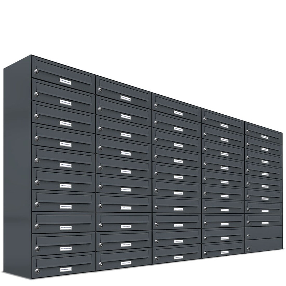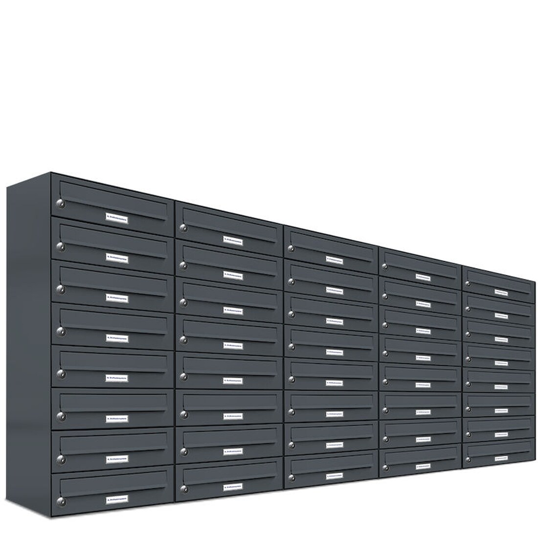AL Briefkastensysteme 40 Fächer Premium Wand Briefkasten Anlage in RAL 7016 Anthrazit Grau, Post A4, robust, wetterfest, Artikelnummer: 132P40EA5P7016