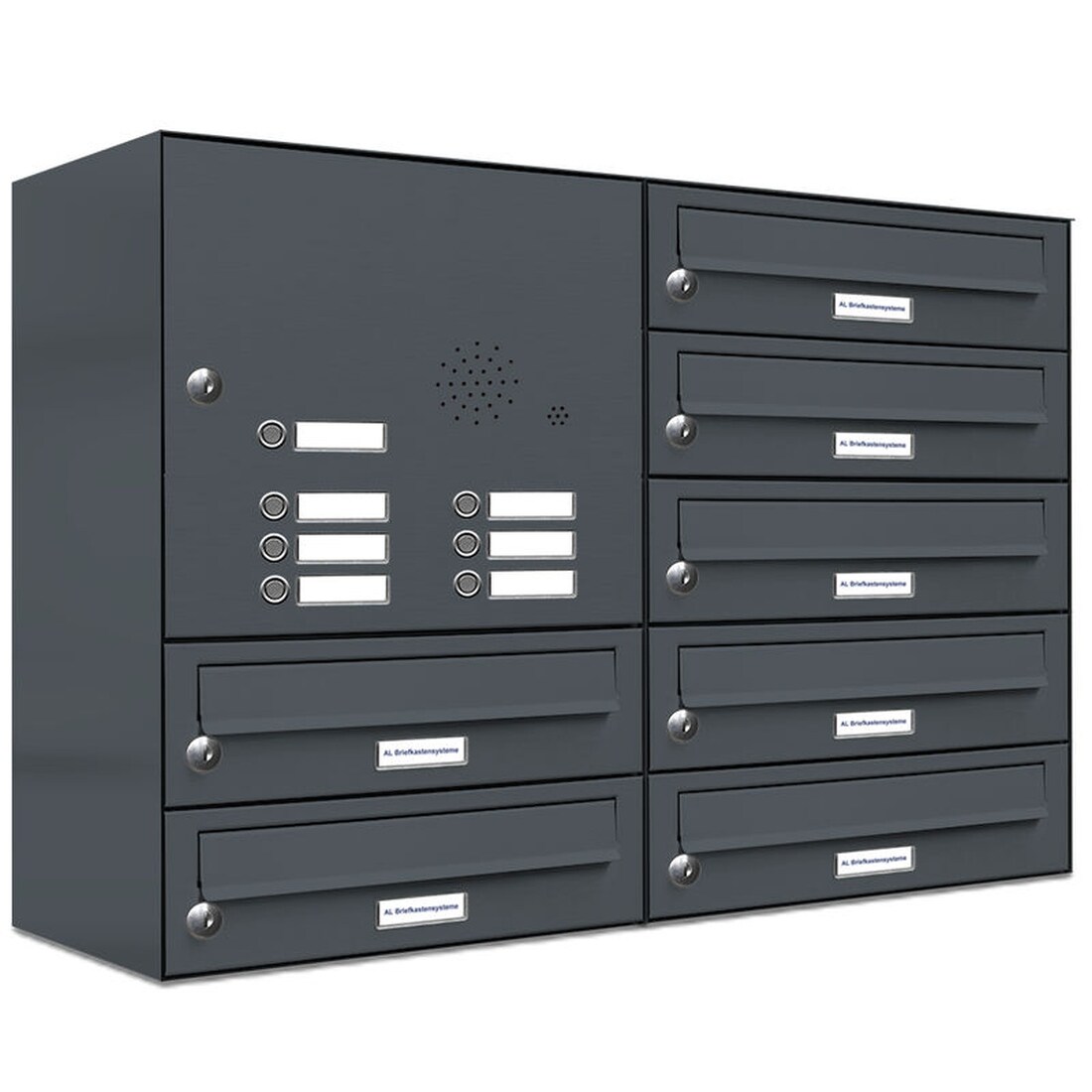 AL Briefkastensysteme 6 Fächer Premium Durchwurf Briefkasten A4 in RAL 7016 Anthrazit Grau, Post A4, robust, wetterfest, Artikelnummer: 132P6DV2P7016