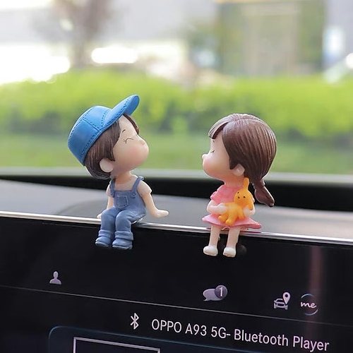 Simpatica coppia di ornamenti per auto, adorabili statuette di bambole che si baciano, romantica decorazione del cruscotto, accessorio creativo per interni di auto, veicolo elettrico, regalo per le