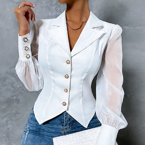 Per donna Camicia elegante Camicia con Bottoni Blusa Tunica Rete Bottoni Tinta unica Semplice Elegante Moda Formale Manica Lunga Collo ripiegato Top Regolari Quotidiano Lavoro Uscire Nero Bianco