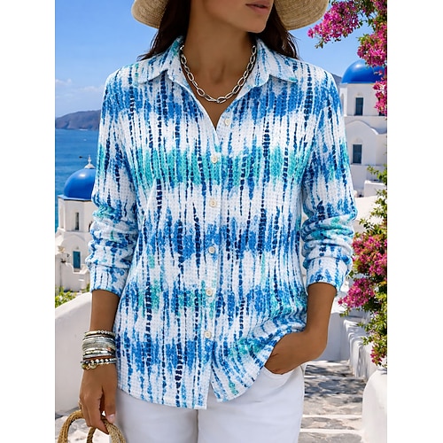 Per donna Camicia Bottoni Stampato Grafico Astratto Vintage Elegante Moderno Manica Lunga Colletto a Camicia Top Regolari Quotidiano Blu Bianco Rosa Arancione Estate Primavera