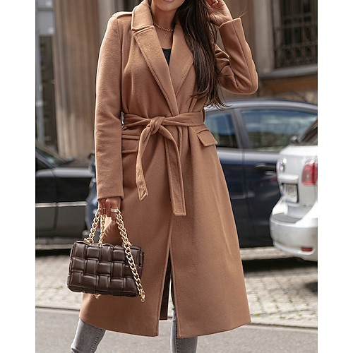 Per donna Cappotto Invernale Cappotto Caldo Confortevole Patchwork Con cintura Elegante Casual Semplice Vacanza Streetwear Casuale Abbigliamento quotidiano Lungo Collo ripiegato Vestibilità regolare