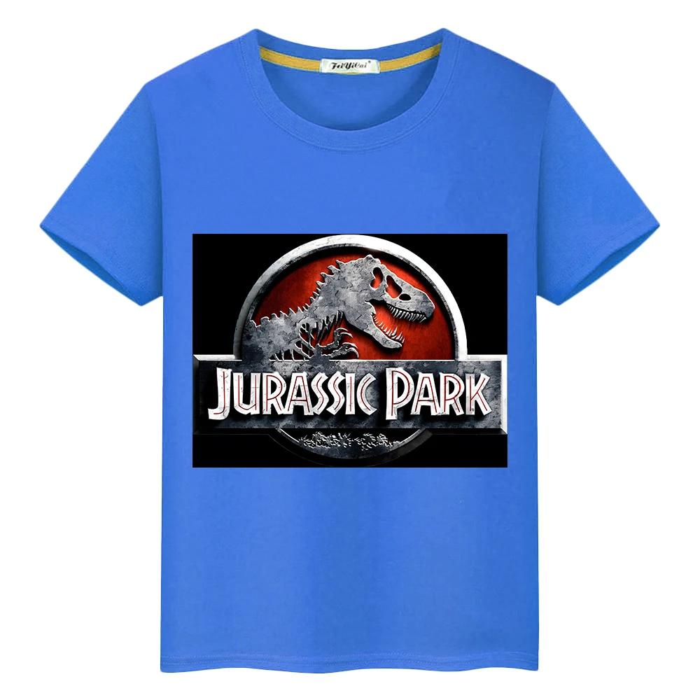Jurassic Park 100%Cotton Summer Anime Tees Dinosaur Short Tops Kawaii Jurassic World T-shirt y2k one piece kids clothes boy girl cm pink
