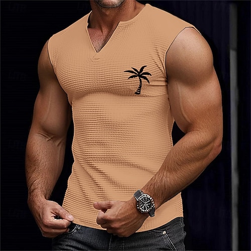 Per uomo Camicia a nido d'ape Canotta Canottiera Maglietta senza maniche Senza Maniche Scollo a V Estate Albero di Cocco Moda Designer Muscolo Stampato All'aperto Palestra Uscire Nero Bianco Giallo