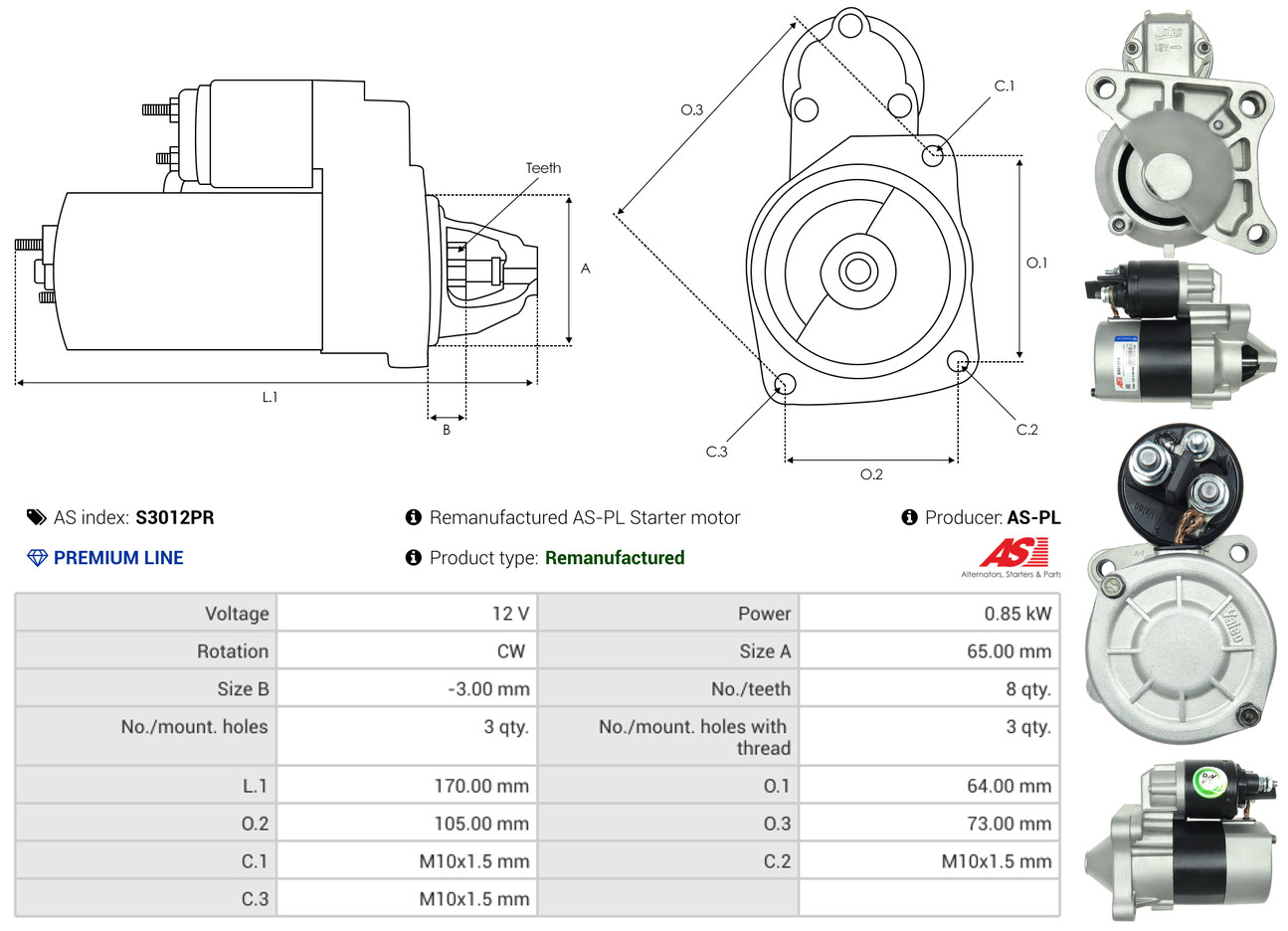 AS-PL Starter 12V für MITSUBISHI RENAULT PEUGEOT NISSAN 8200781943A 23300-00Q1L M0T46371 S3012PR