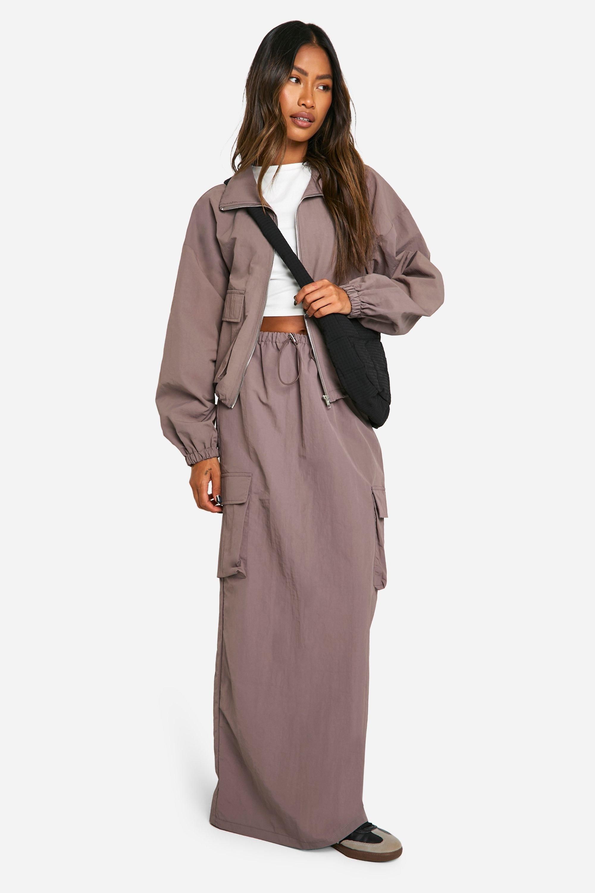 Boohoo Womens Cargo Maxi Skirt - Mocha Nylon - Size 12 UK | Boohoo Sale | Discount Designer Brands
