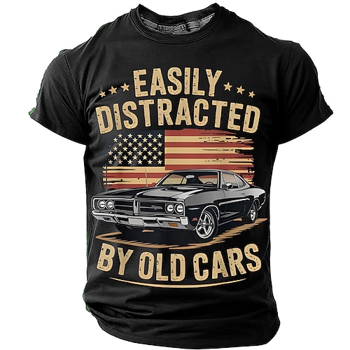 Festa del papà, facilmente distratto dalle vecchie auto, regalo per ragazzi amanti delle auto, classica muscle car, vintage, bandiera degli Stati Uniti, maglietta verde da uomo, abbigliamento,