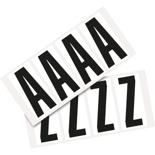 Aufkleber I Kombipackung Buchstabe A-Z, weiß/schwarz, Folie, SH 95mm, 47x98mm, 4 je Buchst./PAK