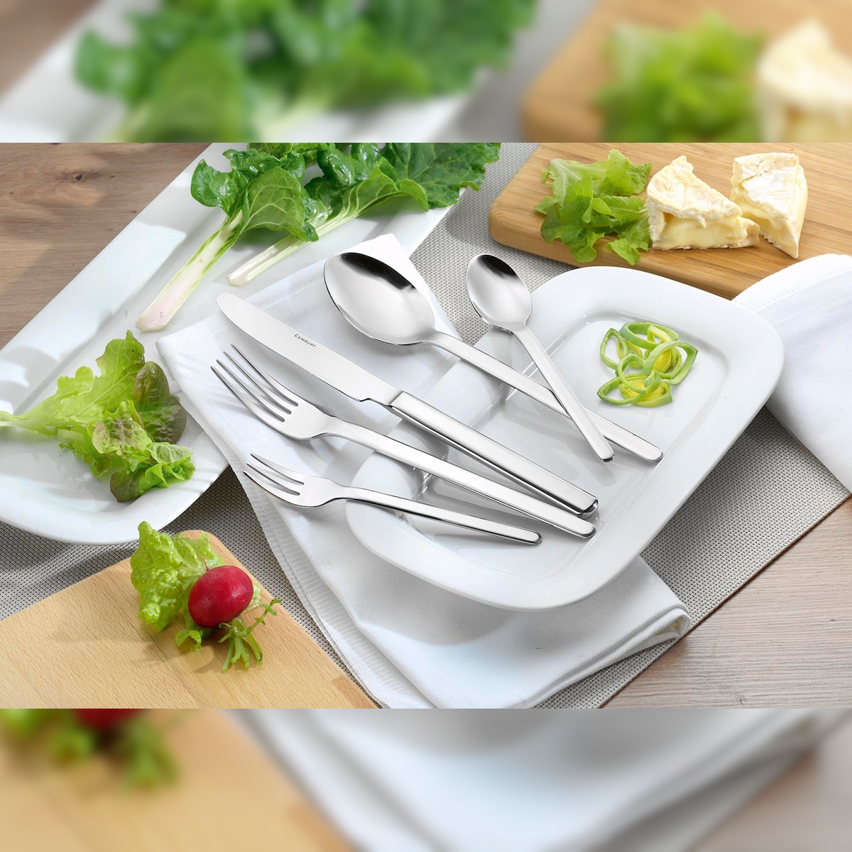60-tlg. Besteck BETTINA von Esmeyer, aus hoch- wertigem Edelstahl 18/10, poliert. Enthält je 12 Messer, Löffel, Gabeln, Kaffelöffel, Kuchengabeln.
