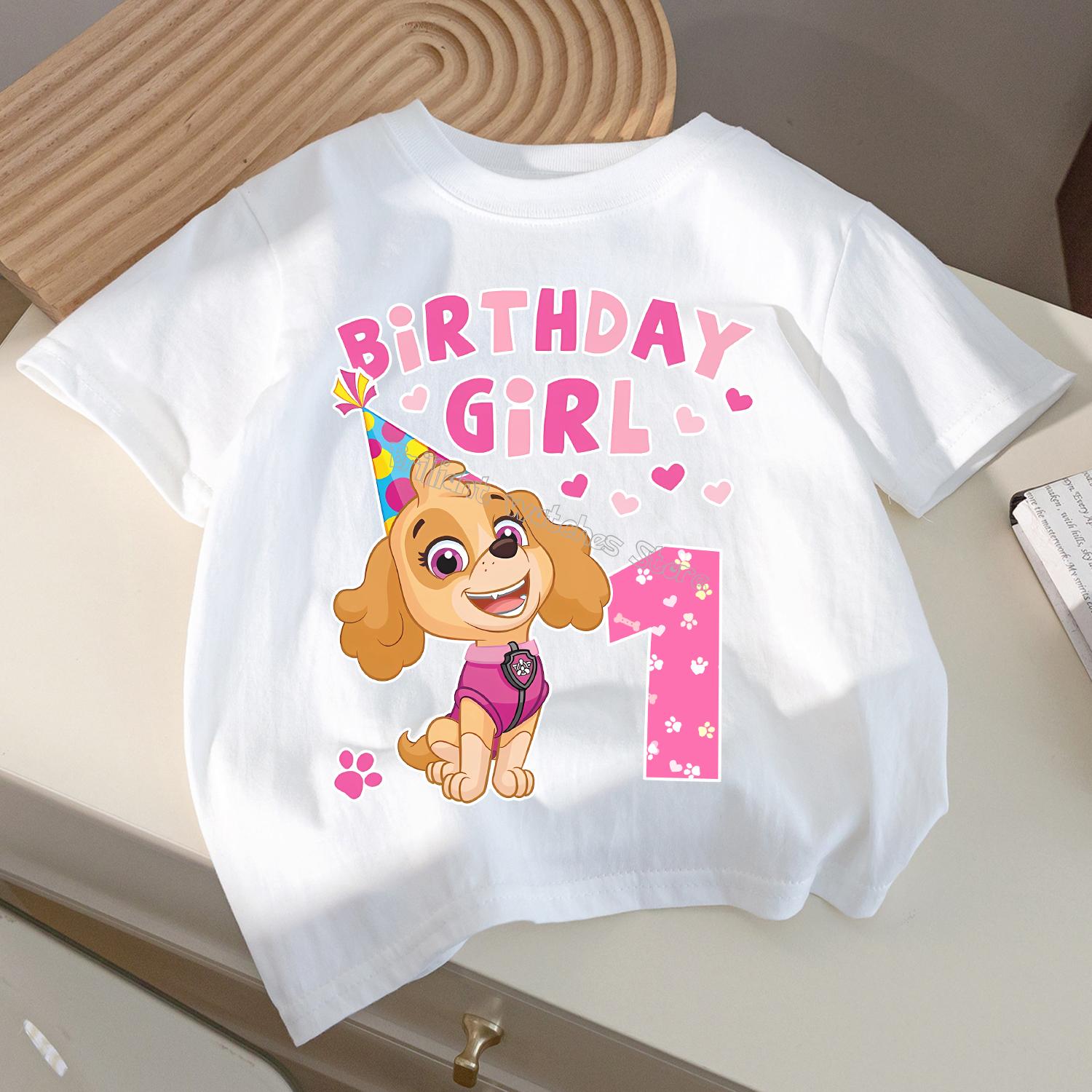 Paw Patrol Skye T-Shirt für Kinder Geburtstag Figur Tee Top Mädchen Weiße Kleidung Cartoon Kurzarm Kinder Lockere Kleidung Geschenk cm
