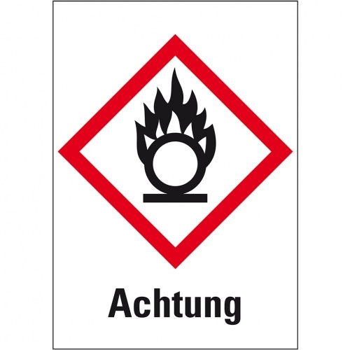 König Werbeanlagen Dreifke® Aufkleber I Gefahrensymbol Flamme über Kreis GHS 03, Achtung, Folie, 52x74mm, GHS-Verordnung