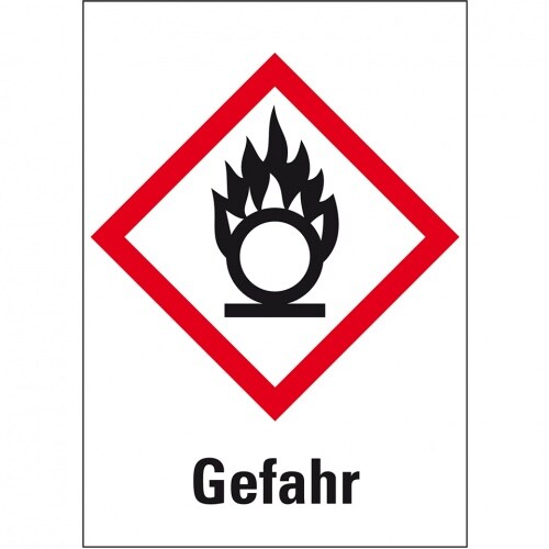 König Werbeanlagen Dreifke® Aufkleber I Gefahrensymbol Flamme über Kreis GHS 03, Gefahr, Folie, 52x74mm, 500/Rolle, GHS-Verordnung