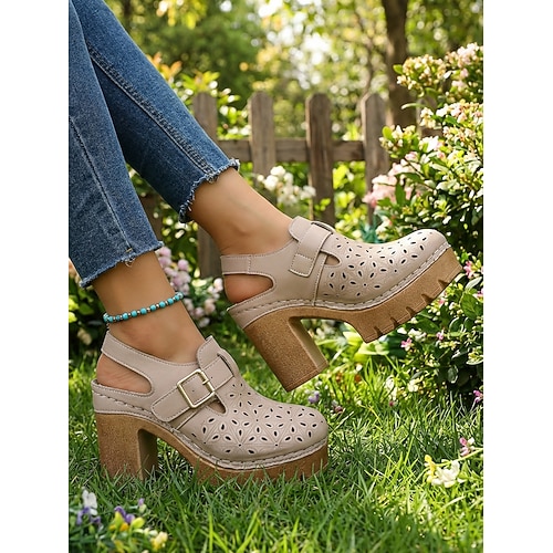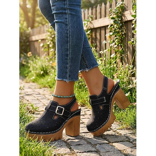 Per donna Casuale Quotidiano Plateau Tacco grosso Punta Tonda Casual Finta Pelle Fibbia Tessuto almond Nero Bianco