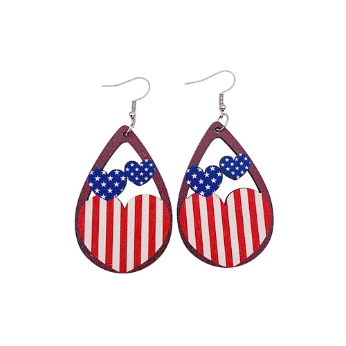 Orecchini a goccia in legno con bandiera USA per donne dell'anniversario dei 250 anni degli Stati Uniti gioielli pendenti patriottici leggeri disponibili in più stili boho casual per l'uso quotidiano