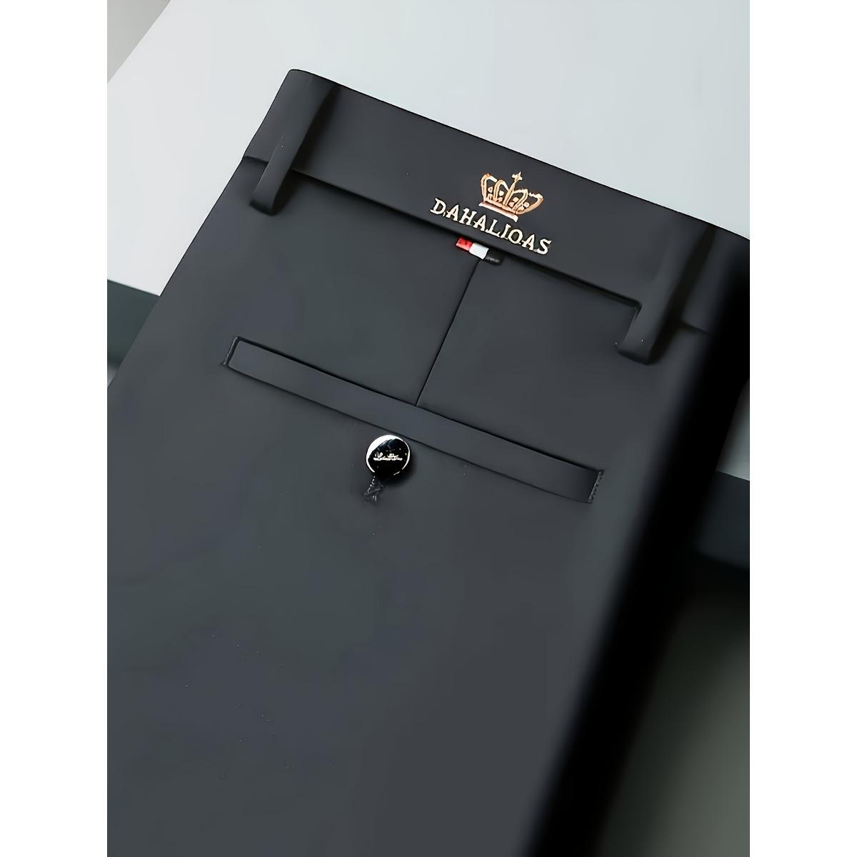 Men's Classic Straight Leg Business Pants Solid Formal Occasion Office Pants Baggy Trousers cm dark grey