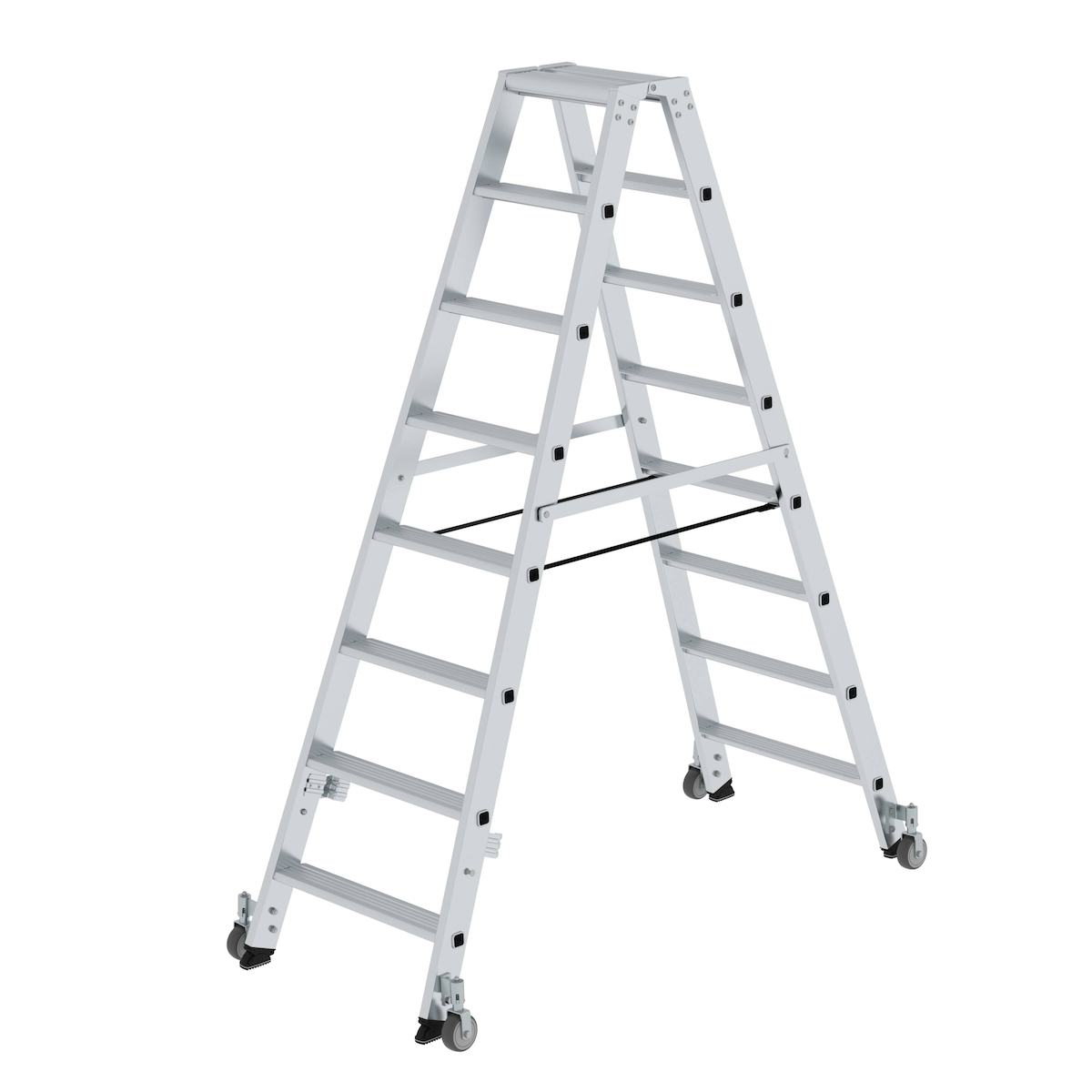 PROREGAL Stufen-Stehleiter beidseitig begehbar mit Rollen 2x8 Stufen