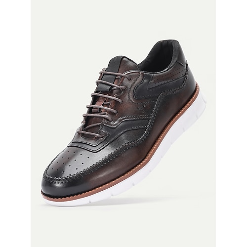 Sneakers ibride da uomo in pelle scamosciata e pelle marrone con design leggero, pelle bovina di alta qualità, perfette per lo sport, la corsa e l'abbigliamento casual di tutti i giorni