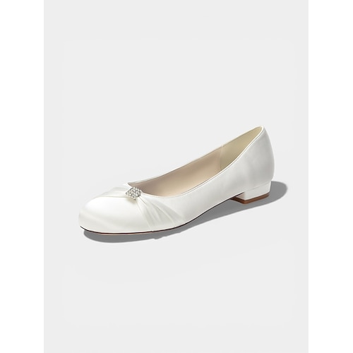 Per donna Scarpe da Sposa Matrimonio Ballerine da Sposa Cristallo Tacco basso Punta Tonda Moda Raso Mocassino Argento Nero Bianco