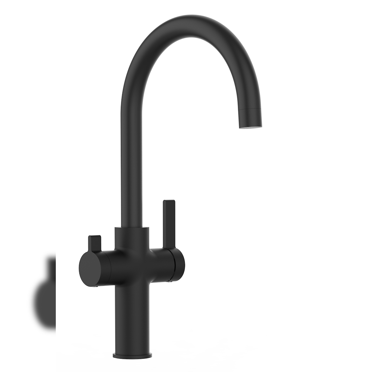 Vizio 3 Wege Wasserhahn Küchenarmatur Spültischmischer FC, Schwarz Matt mit 360° schwenkbarem U-Auslauf
