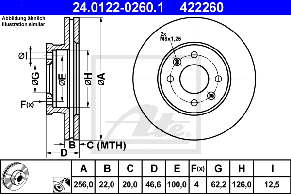 Ate Bremsensatz-Vorn Und Hinten Sg00000d6b Bremsensatz, Scheibenbremse Vorne Rechts Links Belüftet 258mm Für Hyundai Kia Vauxhall Opel Chevrolet 51712