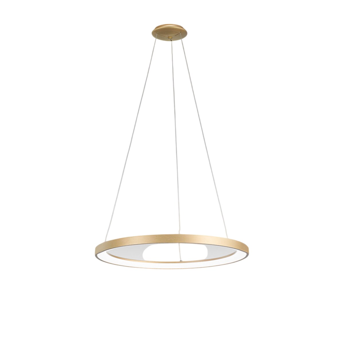 Gea Luce Krizia - 60W dimmbare LED-Pendelleuchte - 4800lm, 3000K warmes Licht, gebürsteter Goldring, Opaldiffusor, D.80 cm, IP20