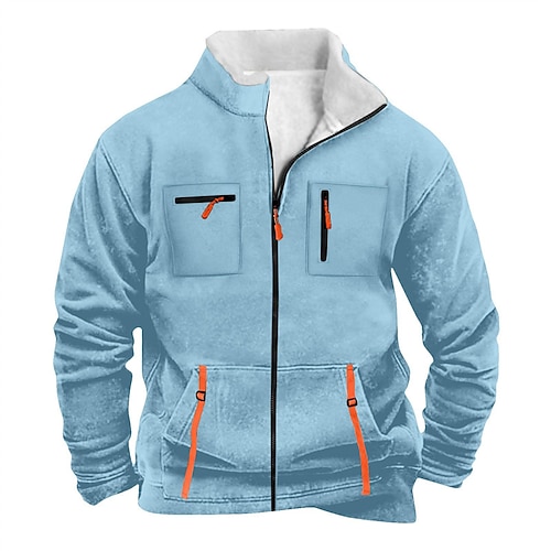 Per uomo Maglia Pile polare Giacca in Pile Felpa con zip intera Nero Viola Arancione Grigio chiaro Grigio scuro Colletto Mao Semplice Tasca Sport Outdoor Quotidiano Ferie Poliestere Streetwear