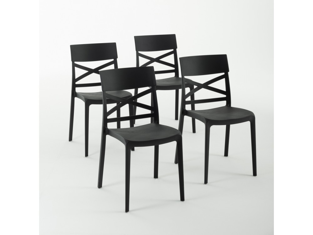 RATTATAN 4er-Set stapelbare Stühle aus Polypropylen mit Glasfasern für Außenbereich und Garten, Bar und Restaurant, Küche modernes Design - MARTINA - Schwarz